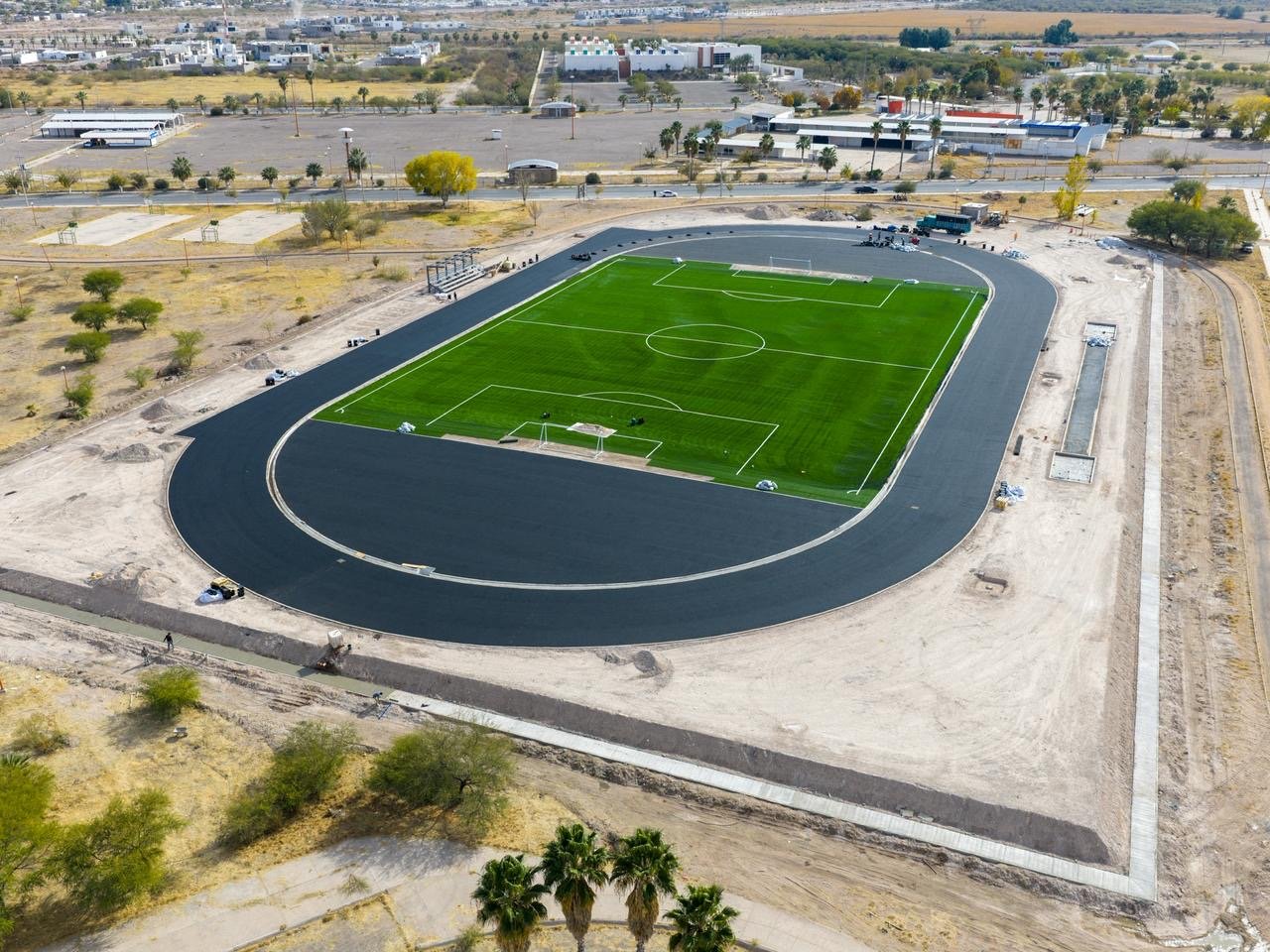 Presenta Obras Públicas avances en pista de atletismo y cancha de fútbol