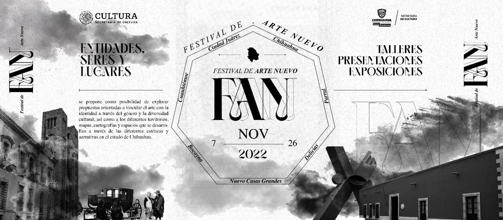 Con el objetivo de impulsar las expresiones del arte contemporáneo y abrir espacios de intercambio entre nuevos creadores y creadoras, Gobierno del Estado, a través de la Secretaría de Cultura, invita a participar en las actividades del Festival de Arte Nuevo (FAN) 2022 “Entidades, seres y lugares”, que se realizarán del 6 al 26 de noviembre.