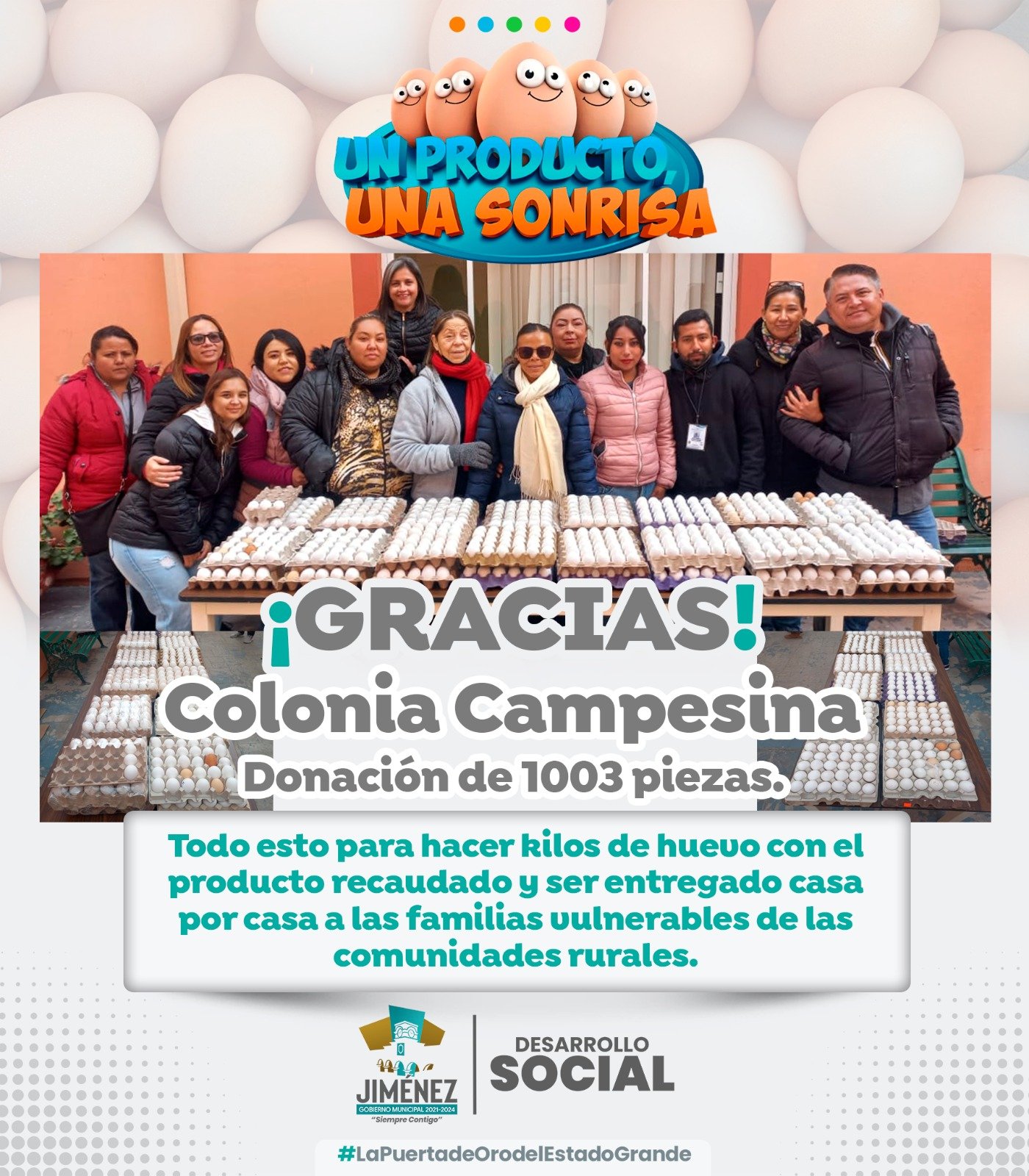 La presidencia municipal de Jiménez, a través del departamento de Desarrollo Social, agradeció a los habitantes de la colonia Campesina por participar en la campaña “Un producto, una sonrisa”.