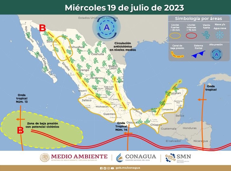 El pronóstico meteorológico para este miércoles, indica que el Monzón Mexicano, generará un ambiente extremadamente caluroso por la tarde.