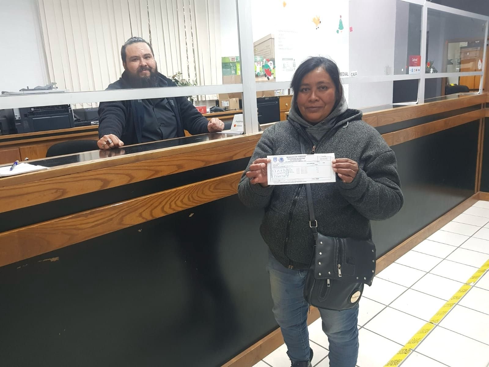 Efrén Núñez, director de catastro, dio a conocer que la señora Dora Patricia Sánchez Loera, proveniente de la Colonia Miguel Ángel Niño, fue la primera contribuyente en realizar el pago del impuesto predial 2024.