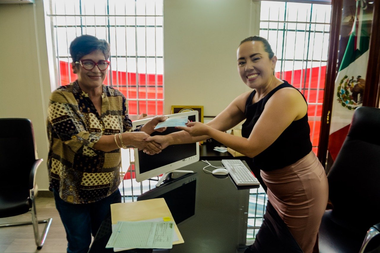 Uno de los cheques que entregó la alcaldesa Aidé López De Anda, es por la cantidad de 8 mil 316.41 pesos a la propietaria de ‘Las Joyas Salsas’ y uno más para ‘Mael Moños’ por 5 mil 966.41 pesos para registro de marca y código de barras.