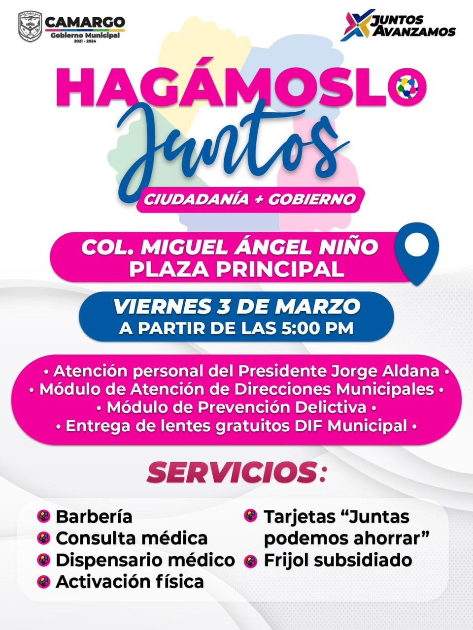 El Gobierno Municipal de Camargo llevará el programa “Hagámoslo Juntos” a la colonia Miguel Ángel Niño.