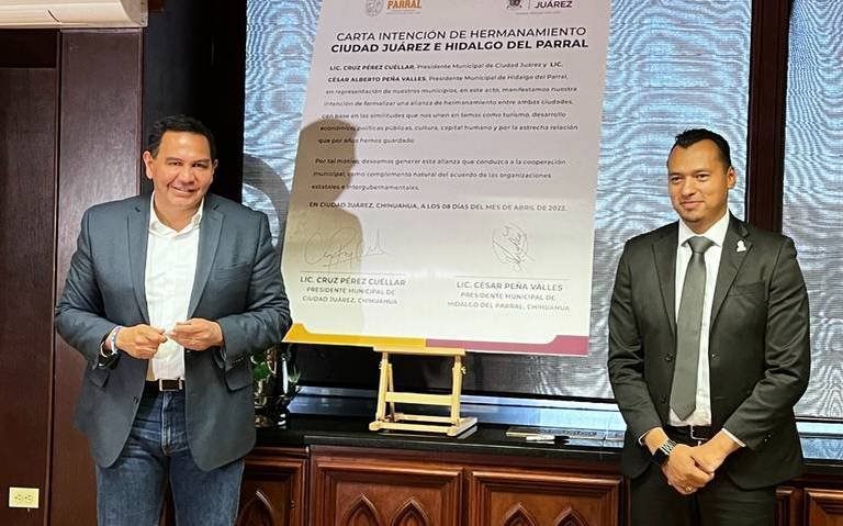 Este viernes se llevo a cabo la firma de una carta intensión de hermandad entre Juárez y Parral que contempla, entre otros acuerdos, abrir una oficina de enlace y crear un corredor turístico que iniciaría en Mazatlán, Sinaloa, cubriendo en su ruta a Parral y concluir en la frontera.