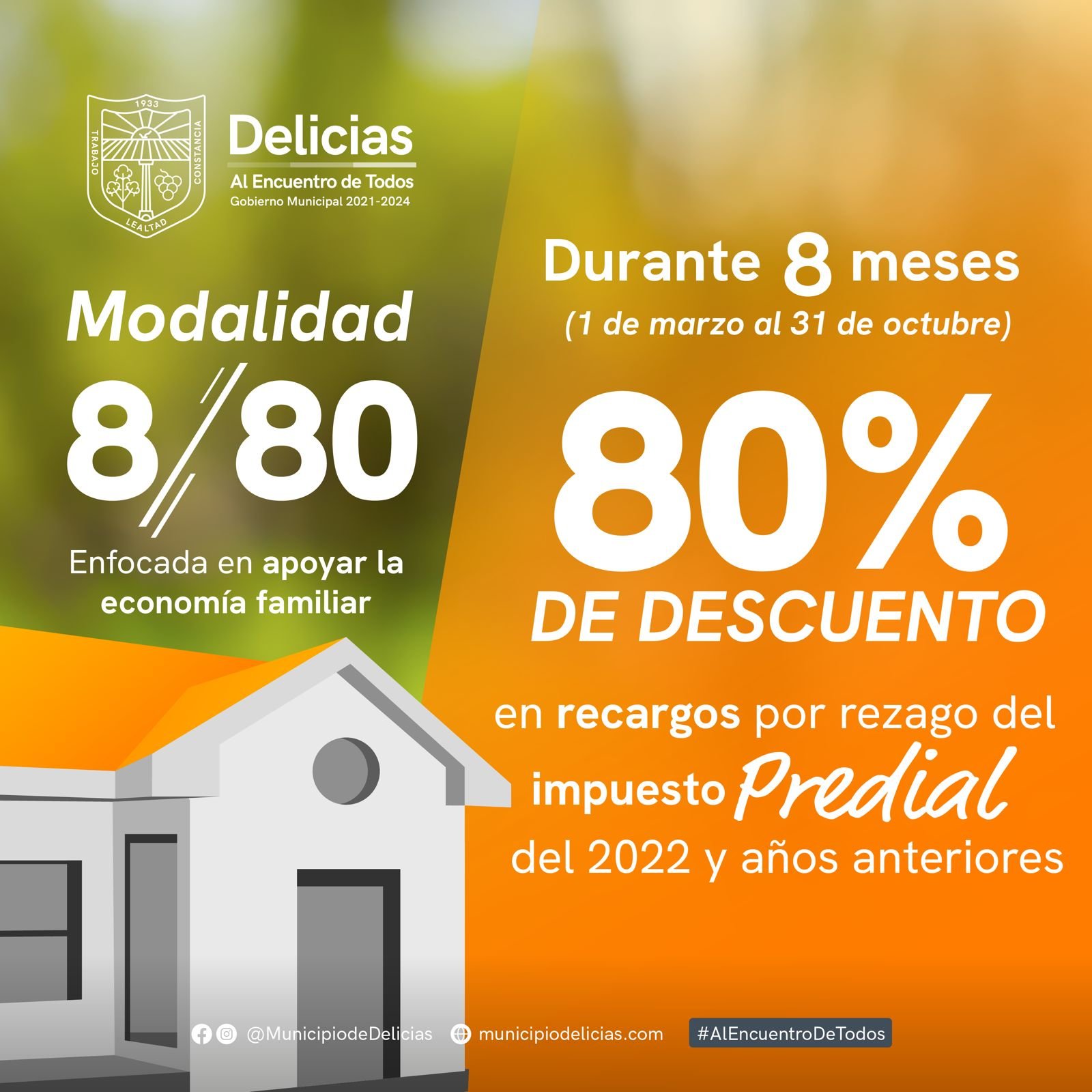 Conscientes de la situación económica que algunas familias viven, se diseñó el estímulo fiscal 8/80 el cual consiste en el 80% de descuento en recargos generados por falta de pago del impuesto predial 2022 y años anteriores, válido hasta octubre, declaró Homero Beltrán del Río, director de Finanzas y Administración de Delicias.