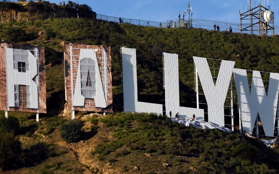 Está previsto que las telas se retiren al terminar el día y que el letrero de Hollywood vuelva así a su estado normal.