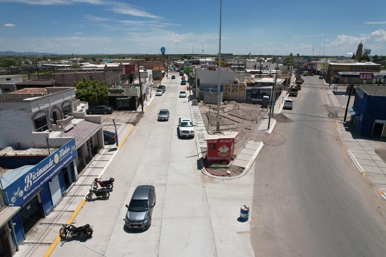 Reabren circulación de Calle Doblado en Meoqui tras pavimentación con concreto hidráulico