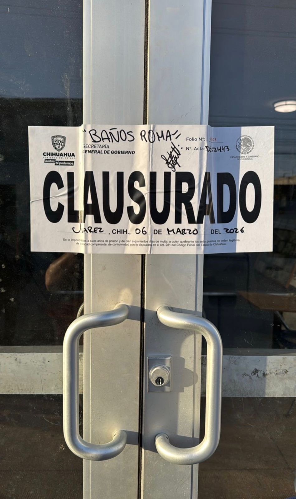 -Baños Roma por operar sin permiso