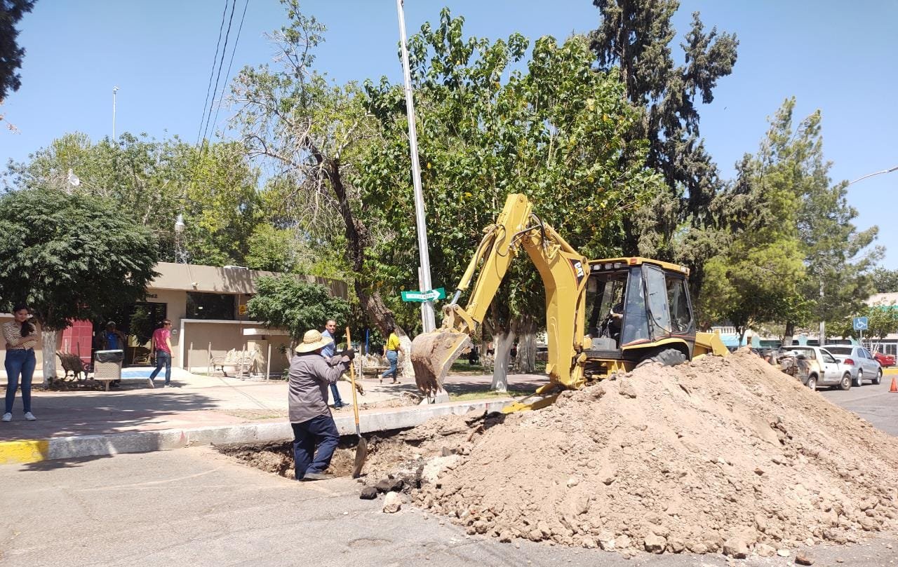 Realiza JMAS Delicias trabajos en hundimiento en la Plaza de Armas