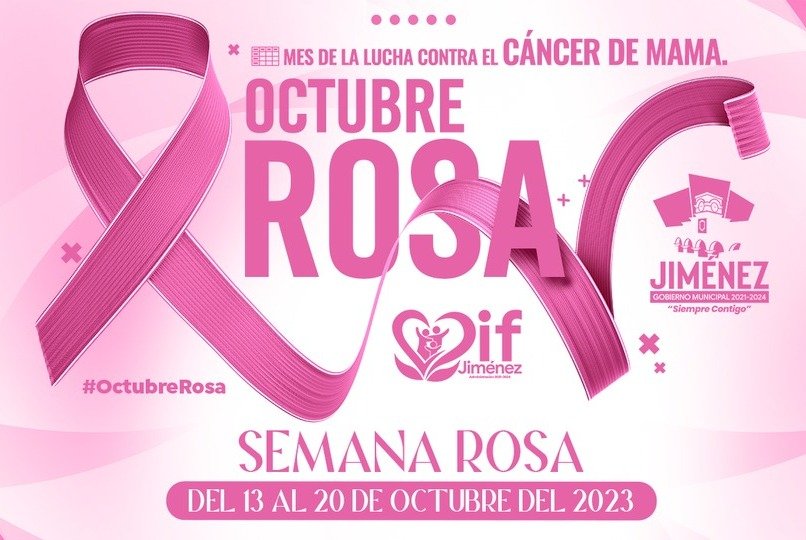 El Gobierno Municipal de Jiménez dio a conocer que se tendrá la Semana Rosa del 13 al 20 de octubre en conmemoración al mes de la Lucha Contra el Cáncer de Mama.