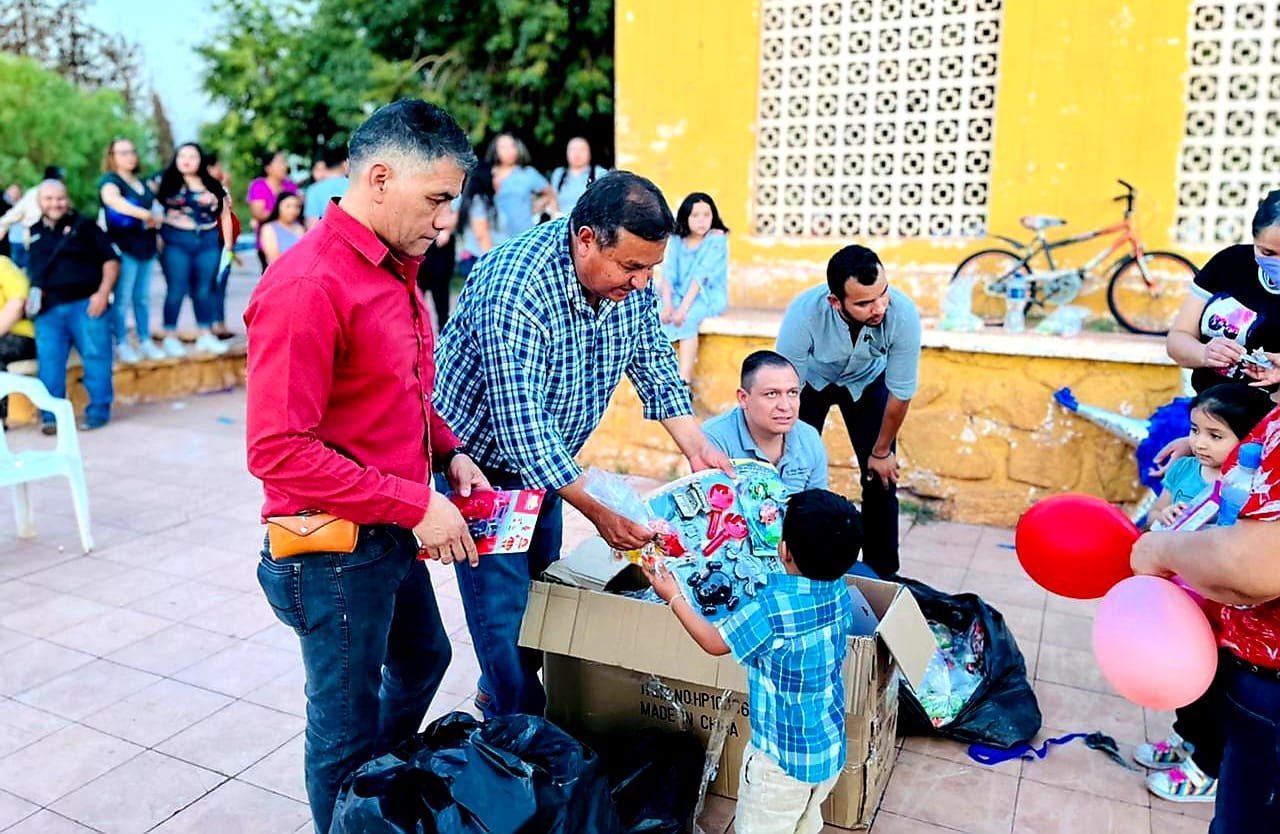 Varios funcionarios municipales y estatales con apoyo de la Secretaria de Desarrollo Humano a través de la directora Nancy Frias entregaron juguetes y dulces a todos los pequeños de la comunidad.