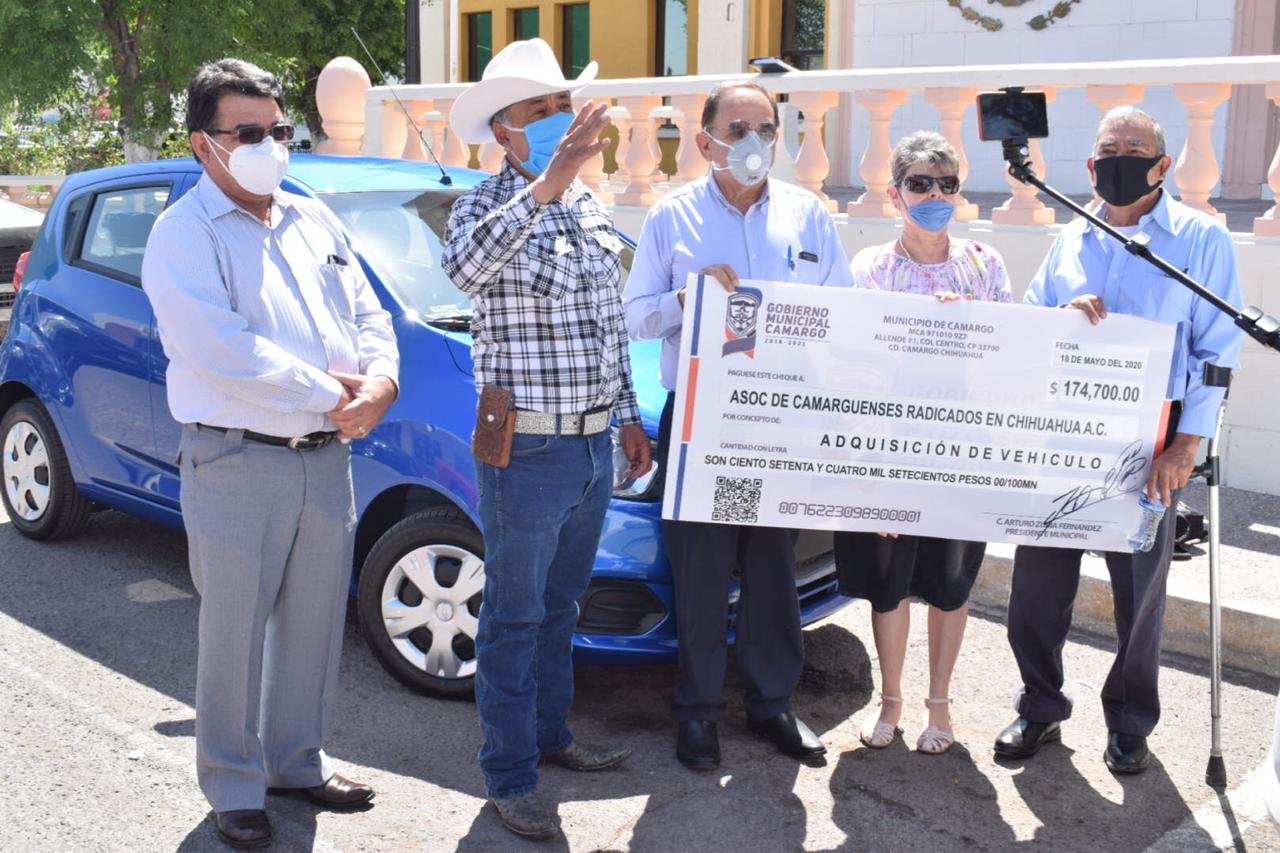 CAMARGO.- El Alcalde Arturo Zubía entregó el apoyo económico equivalente a más de 170 mil pesos a la asociación camarguense Radicados en Chihuahua A.C.