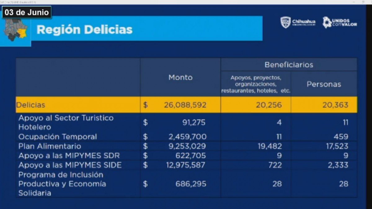 RECIBE REGIÓN DE DELICIAS 26 MDP EN APOYOS POR CRISIS COVID