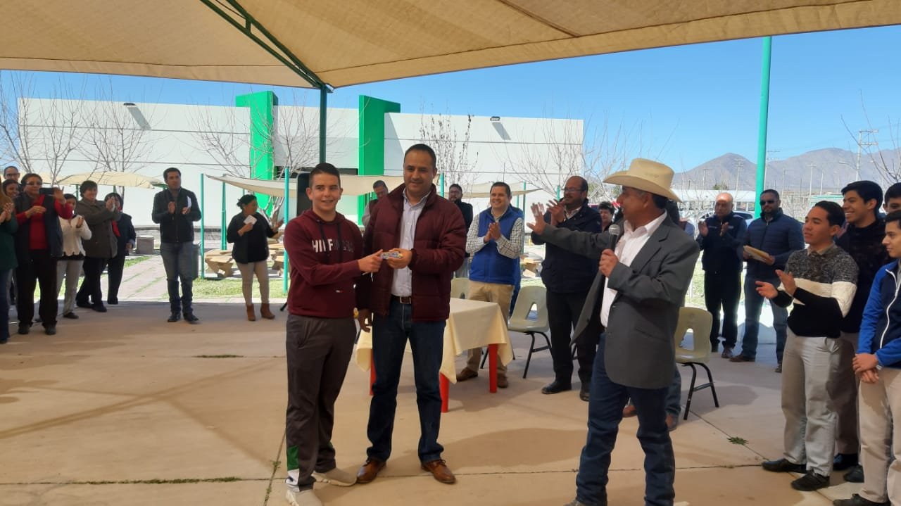 Camargo.- La mañana de este día, el recaudador de Rentas, Raúl Aguilar; y el Alcalde Arturo Zubía Fernández hicieron entrega de un nuevo camión de transporte, que gobierno del Estado donó al Municipio, gracias a las gestiones del Presidente Municipal y que fue destinado a los alumnos de Colegio de Bachilleres plantel 15.