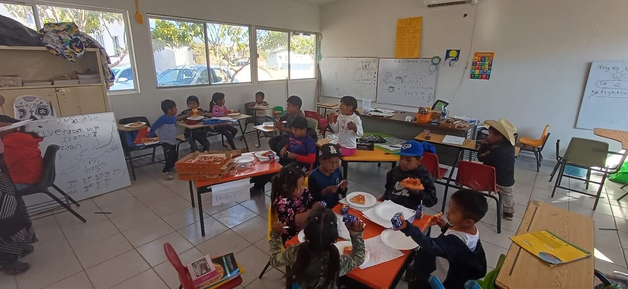 La asociación civil Adelitas A.C. realizó una posada para niñas y niños del albergue de jornaleros en la comunidad de Cárdenas, donde compartieron alimentos, dulces y juguetes, con el objetivo de brindar un momento de alegría y convivencia a los menores.