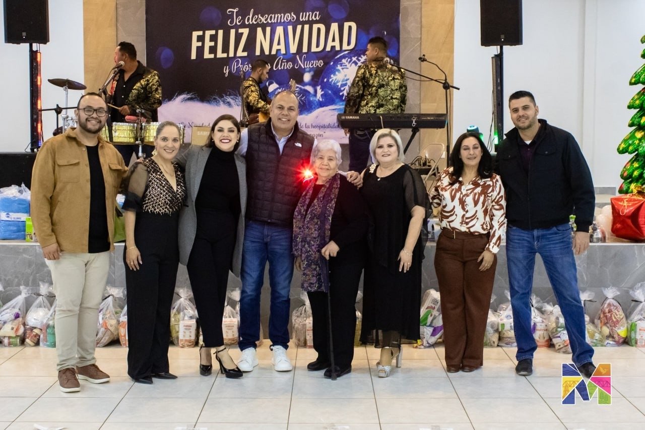 “Esto es solo un pequeño detalle de agradecimiento por todo lo que nos han enseñado nuestros queridos abuelitos y abuelitas”, expresó la alcaldesa de Meoqui, Miriam Soto, durante la posada navideña organizada por el Gobierno Municipal y el DIF, donde convivió con integrantes de los grupos de la tercera edad y maestros jubilados del municipio, reiterando su compromiso de seguir apoyando a este importante sector de la población, contando con la asistencia de 160 personas, pertenecientes a 9 grupos de la tercera edad del DIF, así como 2 grupos de maestros jubilados, tanto estatales como federales, quienes disfrutaron de una tardeada-baile, cena, música en vivo y regalos.