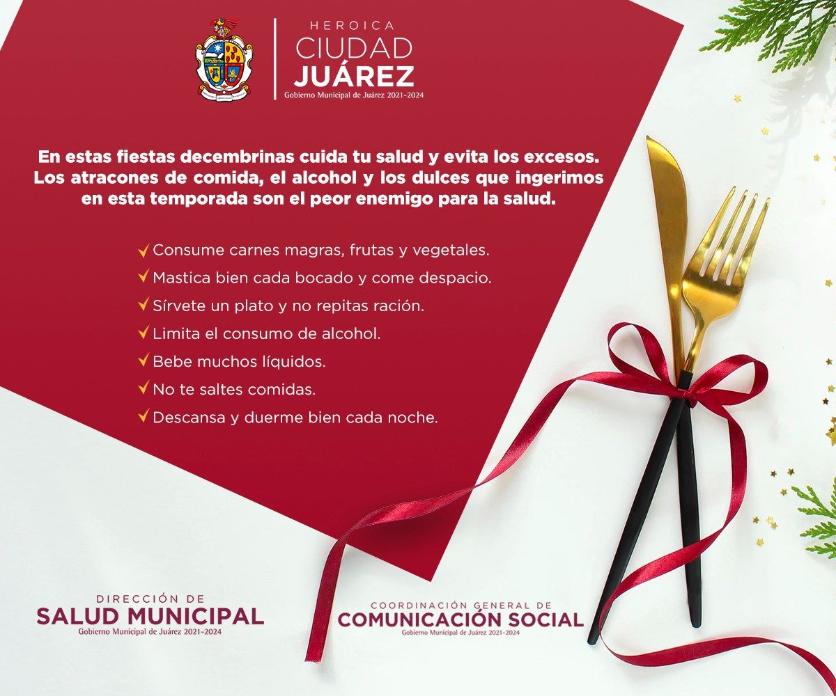 En esta temporada de fiestas, los atracones de comida, el exceso de alcohol y de dulces son los peores enemigos para la salud, por ello, el Gobierno Municipal extendió una serie de recomendaciones a la ciudadanía para evitar factores de riesgo.