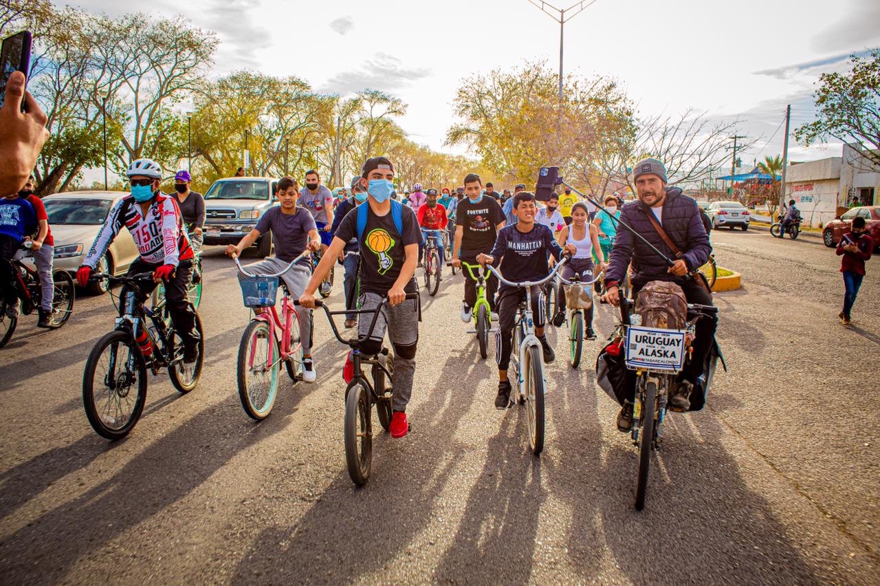 Recorre Tabaré Alonso las calles de Meoqui con decenas de ciclistas