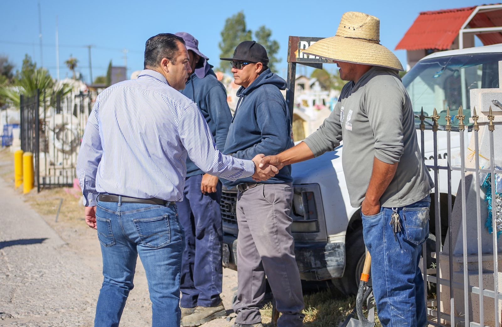 A pocos días del Día de Muertos, el presidente municipal Jesús Valenciano García supervisó personalmente los trabajos de limpieza y mantenimiento en el Panteón Municipal de Delicias, donde constató que todo se encuentra prácticamente listo para recibir a las miles de familias que cada año acuden a rendir homenaje a sus seres queridos.