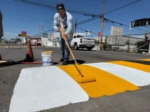 El titular de Vialidad en Delicias, Erick Rodríguez, informó que se han intensificado los trabajos de aplicación de pintura en cruces peatonales y vialidades de la ciudad, como parte de las acciones derivadas del recurso participativo y de las solicitudes realizadas por la ciudadanía a través de distintos medios de comunicación.