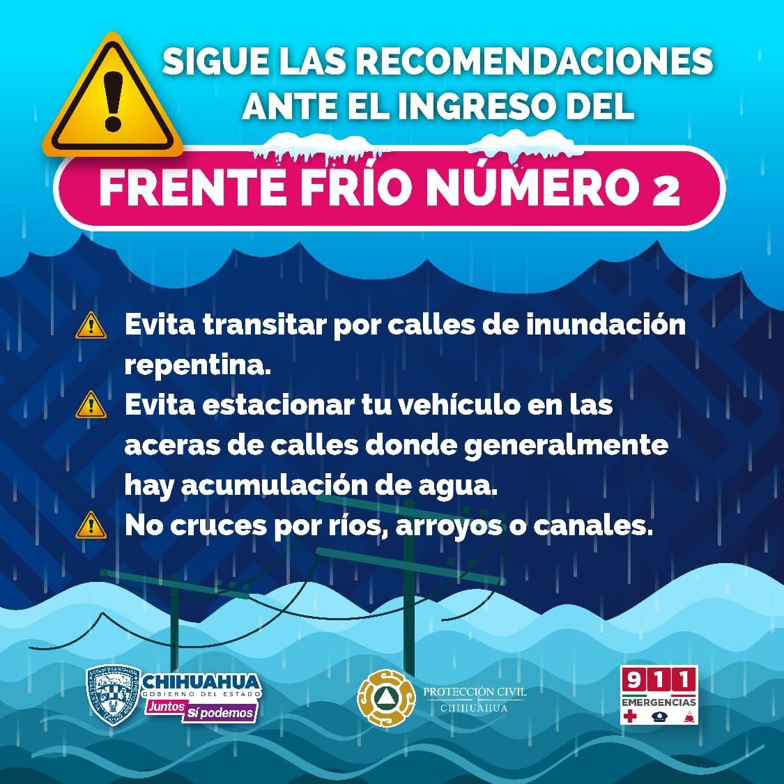 Al conducir, extremar precauciones ante presencia de hielo o neblina en carreteras, así como tener especial cuidado con niños, adultos mayores y personas con enfermedades crónicas. En situación de emergencia llamar al 9-1-1.