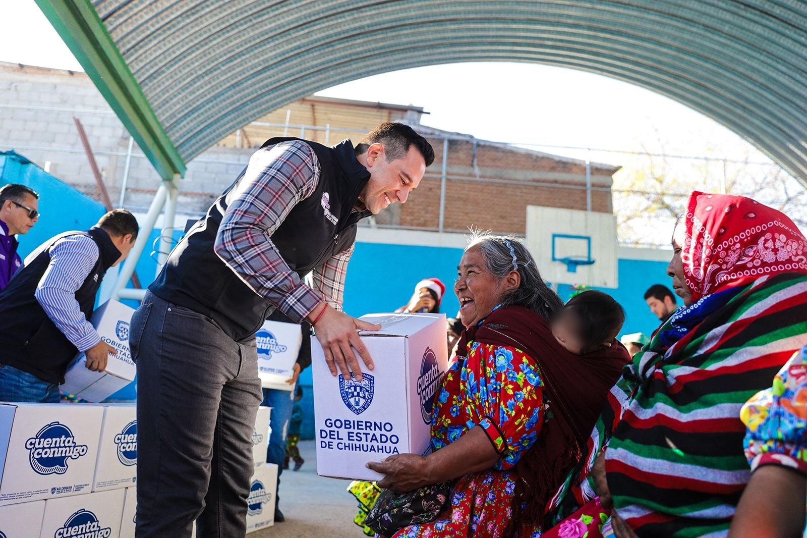 La Secretaría de Pueblos y Comunidades Indígenas (SPyCI) repartió 350 paquetes alimentarios del programa “Juntos por Nuestra Identidad” en distintos asentamientos y comunidades indígenas del municipio de Chihuahua, en beneficio de igual número de familias.