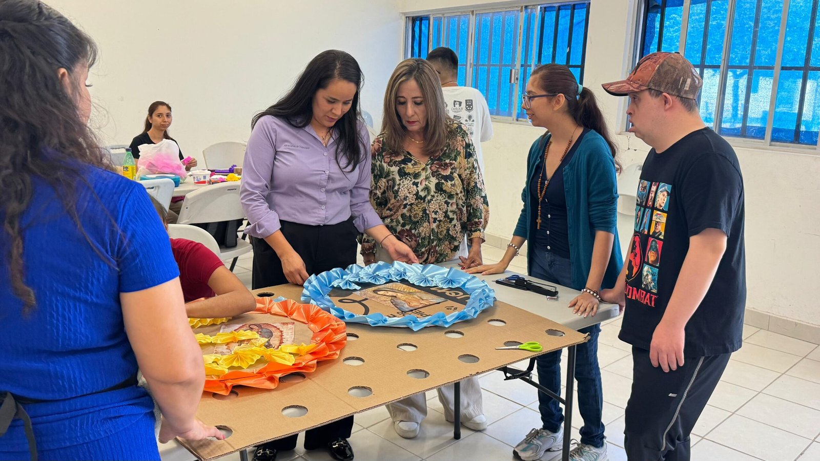 Estos jóvenes, que viven con discapacidades diversas como ceguera, sordera o síndrome de Down, han encontrado un espacio para aprender y trabajar juntos. Además de los talleres de coronas, participan en la elaboración de piñatas, clases de canto y activación física, actividades que fortalecen su inclusión y desarrollo personal.
