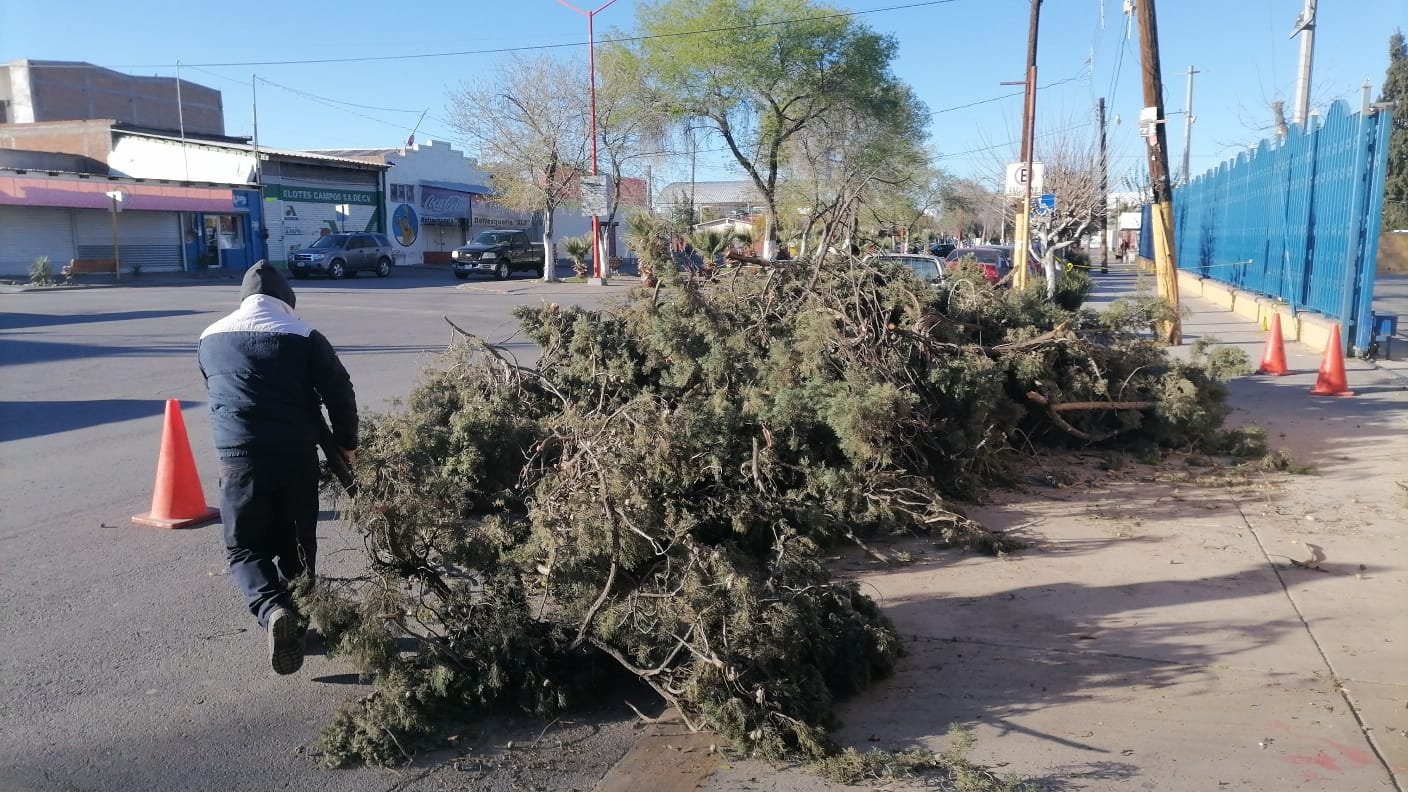 El Gobierno Municipal pone a disposición de la ciudadanía el WhatsApp 6391682030 y la aplicación móvil Delicias Touch, para que sean enviados los reportes de puntos de riesgo para atender de inmediato la situación y evitar riesgos a la población. Retiran árboles a punto de caer de la Escuela Leyes de Reforma
