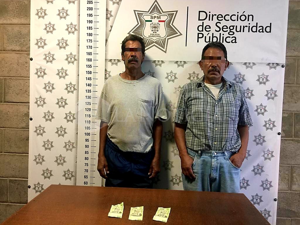 La afectada declaró que momentos antes, a las afueras del local comercial “Deli donas”, ubicado en la calle Segunda y avenida Tercera Poniente, dos sujetos del sexo masculino le habían arrebatado de las manos de su hija de 4 años de edad, la cantidad de 600 pesos; por lo que policías municipales procedieron a inmediata detención de los dos hombres identificados como Oscar Armando C.R. de 58 años de edad; y Raymundo A.M. de 60 años, quienes aceptaron haber perpetrado el robo, de modo que fueron trasladados a la DSPM y puestos ante el ministerio público por el delito antes mencionado.