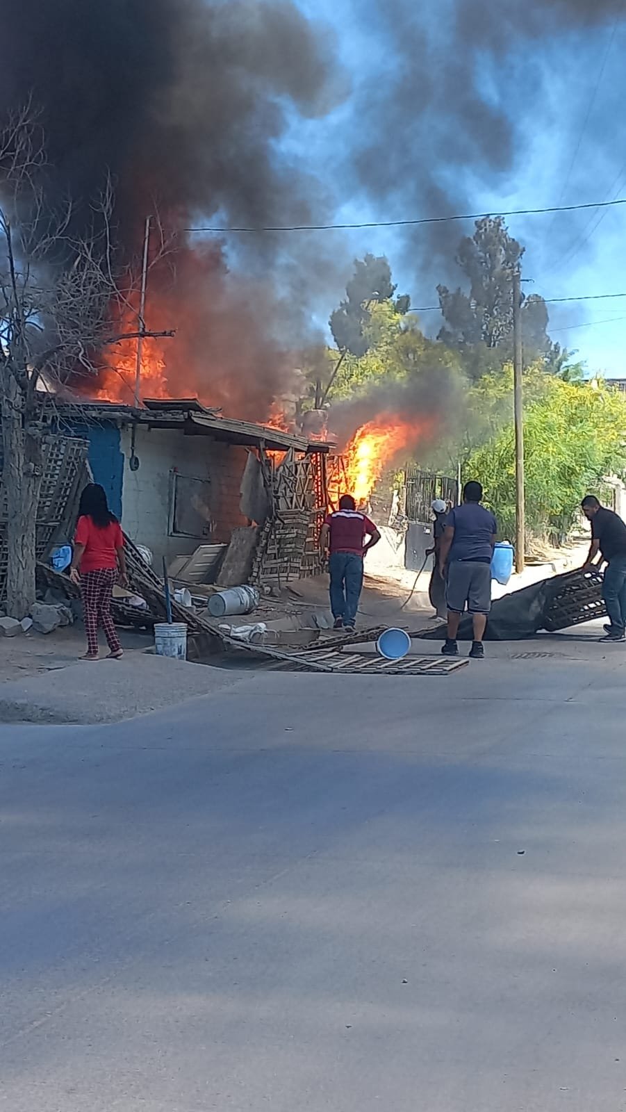 Los trabajadores de Desarrollo Social llamaron a una unidad de Seguridad Pública Municipal que circulaba en el sector y los agentes se sumaron a combatir el fuego con ayuda de los vecinos que proporcionaron cubetas de agua en lo que llegaron los Bomberos.