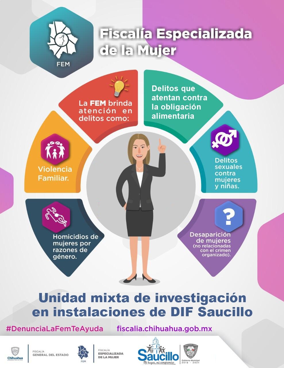 La oficina de FEM en Saucillo, tendrá por objeto la investigación y persecución de hechos en los que se haya privado de la vida a mujeres por razones de violencia de género; igualmente en los casos de los siguientes hechos o conductas delictivas en que la víctima sea mujer: