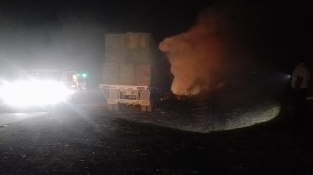 Camargo.- La tarde noche de este miércoles se registró un incendio en la caja de un tracto camión que transportaba pacas de alfalfa; mismo que se dirigía de Delicias a Torreón, siendo en el tramo Camargo-Jiménez que se percató del incidente.