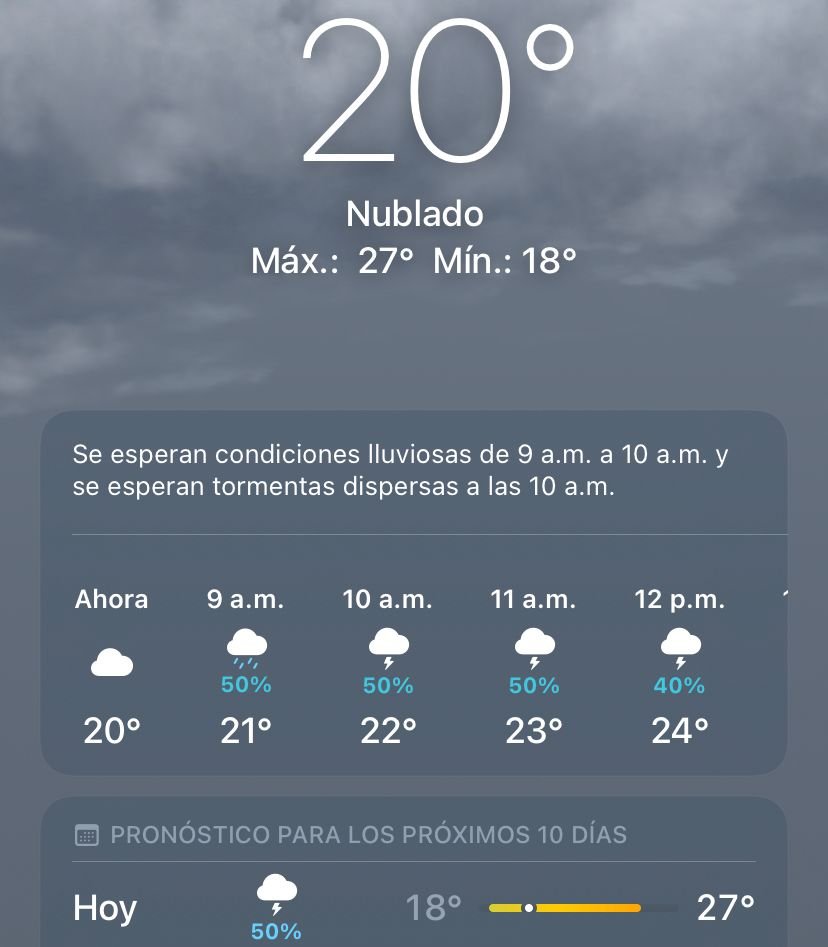 Durante el día se prevé un cielo nublado, un 60 por ciento de probabilidades de lluvia y formación de tormentas dispersas y una temperatura máxima de 27 grados centígrados.
