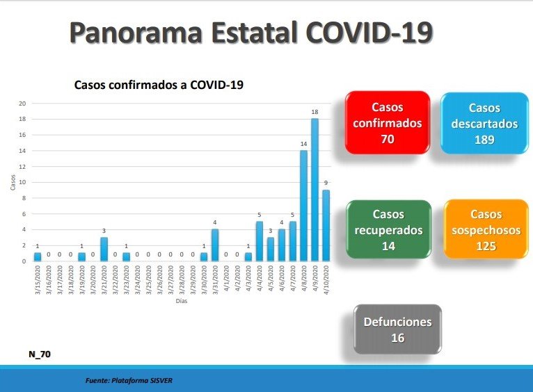 Chihuahua.- Desde el 15 de marzo que se registró el primer caso de COVID-19 en Chihuahua, a la fecha suman 70 positivos al contagio así como 14 recuperados, de acuerdo al reporte epidemiológico de la Secretaría de Salud que emite diariamente para informar a la población del avance de la enfermedad.