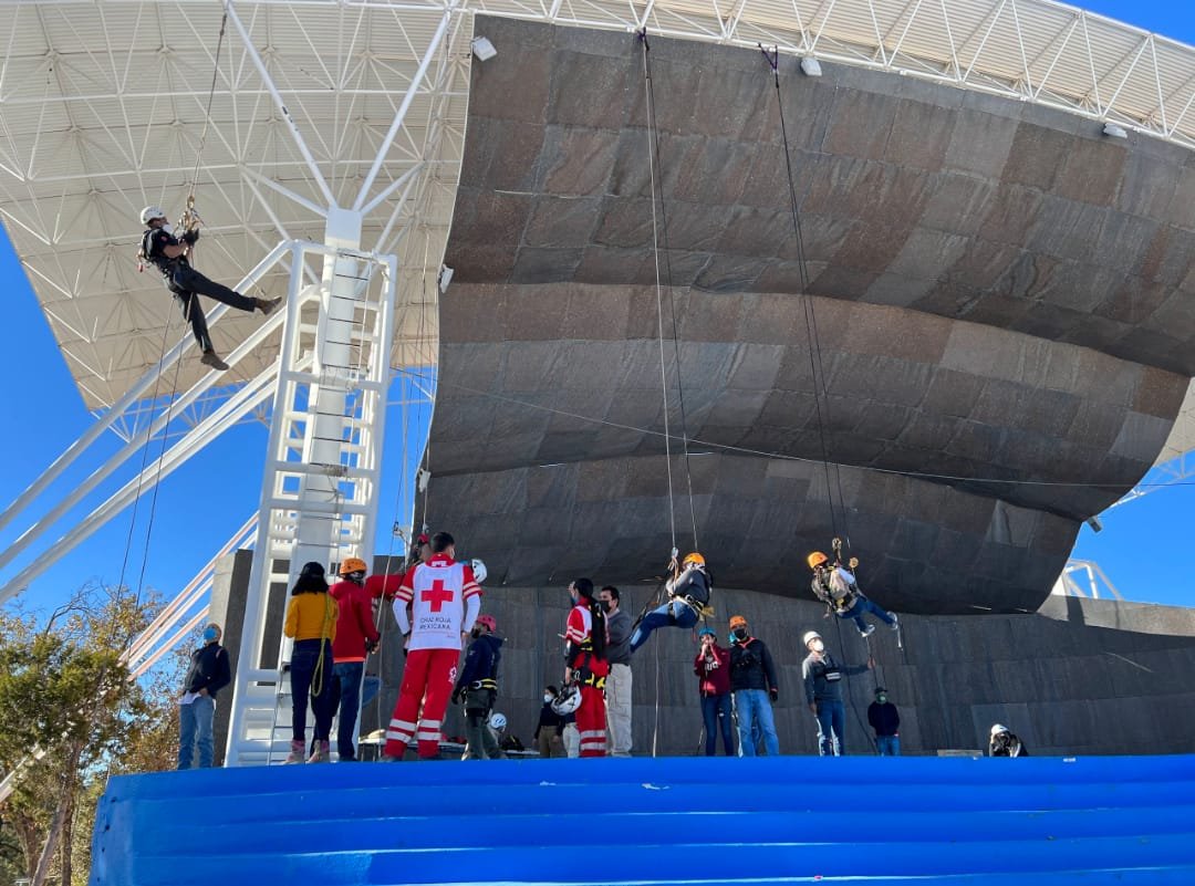 Al respecto, Almada comentó que las practicas realizadas en el taller fueron: Equipo de protección individual (EPI) el cual consta de la revisión de arnés, casco y técnicas de ascenso y descenso, también mencionó que se realizó una presentación de nudos para trabajo vertical, así como la técnica de ascenso y descenso por cuerda.