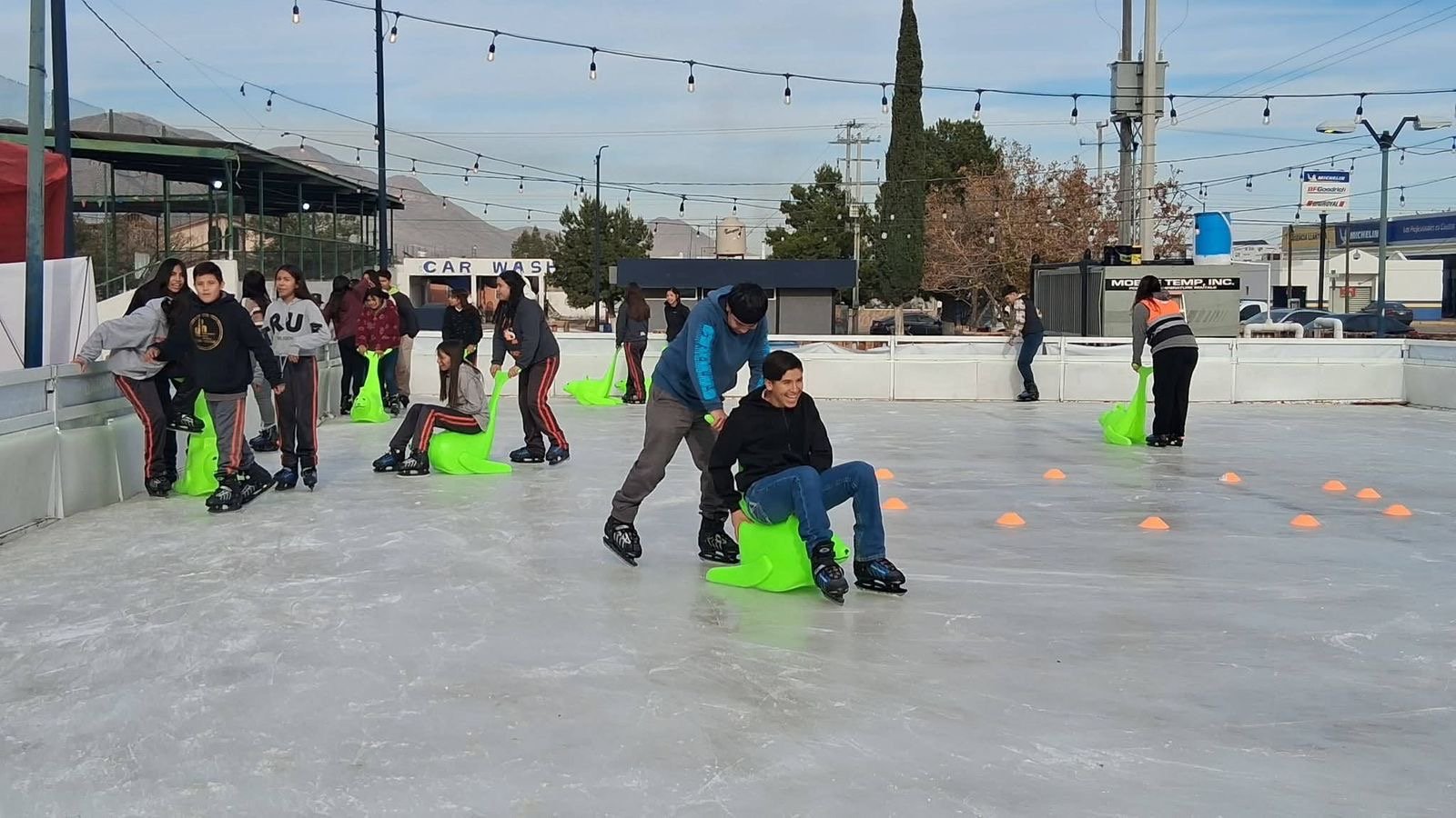 Cumple alcalde de La Cruz compromiso con estudiantes de Corraleño de Juárez, acuden a pista de hielo en Camargo