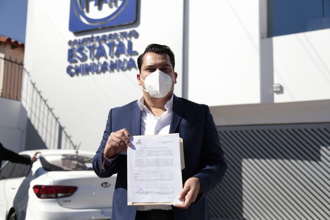 Acompañado de su familia, así como también de su suplente, Carlos García, hombre de trabajo originario de Rosales, Roberto Carreón manifestó a través de la documentación necesaria su registraste como precandidato para la diputación local por el XIX Distrito que abarcar los municipios de Rosales y Delicias.