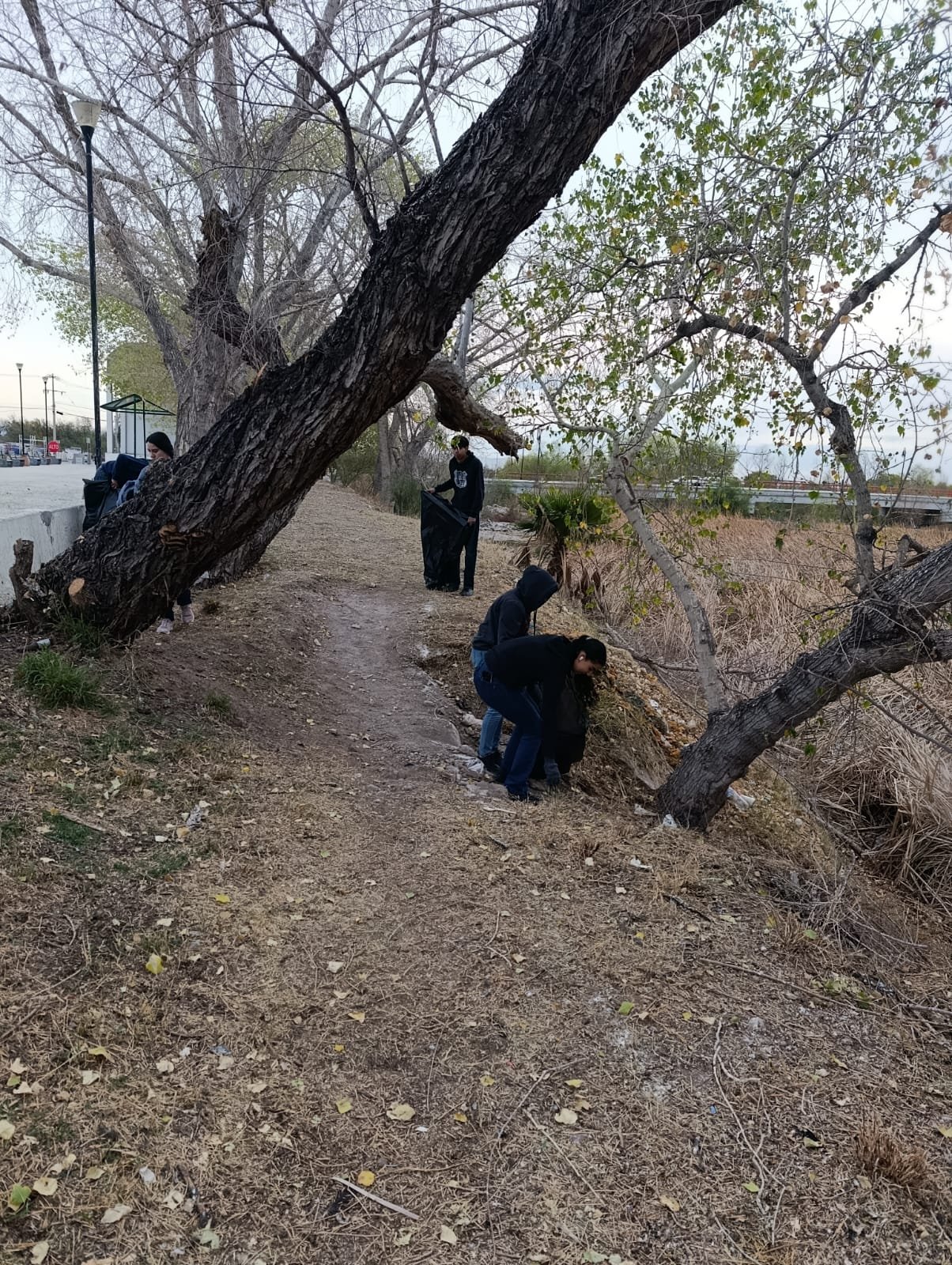 Un grupo de 10 jóvenes del primer semestre de la carrera de Ingeniería en Sistemas del Tecnológico de Delicias se sumó a las labores de limpieza en la ribera del Río San Pedro, específicamente en la zona del bulevar Eduardo Nájera, contribuyendo al cuidado y preservación del medio ambiente en las jornadas de limpieza que realiza el Gobierno Municipal de Meoqui
