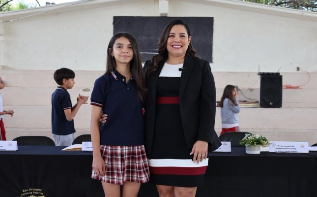 Como parte de las actividades desarrolladas por el Congreso del Estado en el marco del Día de la Niñez, la diputada local por el Distrito 15, Joss Vega, visitó la Escuela Primaria Leyes de Reforma con el objetivo de reconocer a Erika Marian Reza, Diputada Infantil 2026, así como para hacer la entrega simbólica del apoyo económico de $82,000 destinados para las mejoras del plantel.
