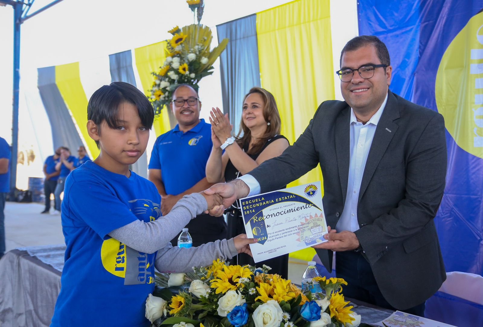En una emotiva ceremonia, con motivo del día del estudiante, la secundaria técnica 3014, reconoció el esfuerzo de alumnos destacados de los diferentes grados, así como a quienes destacan en actividades extraescolares.