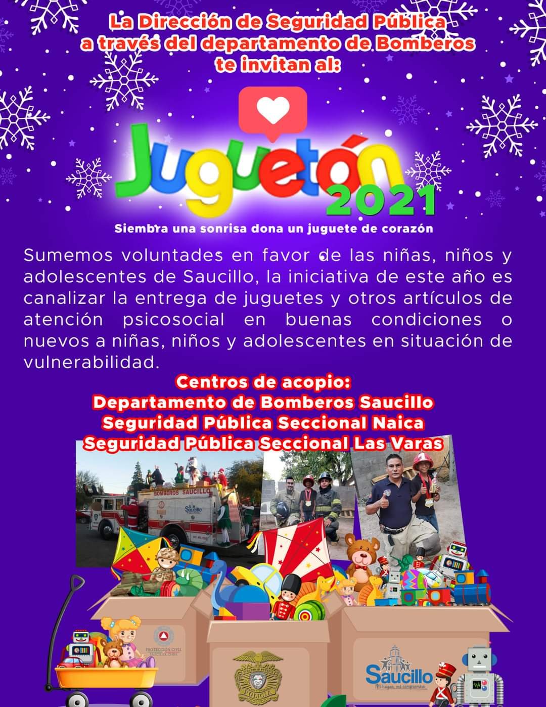 La Dirección de Seguridad Pública de Saucillo, a través del departamento de Bomberos, invitaron a la ciudadanía a participar en el Juguetón 2021.
