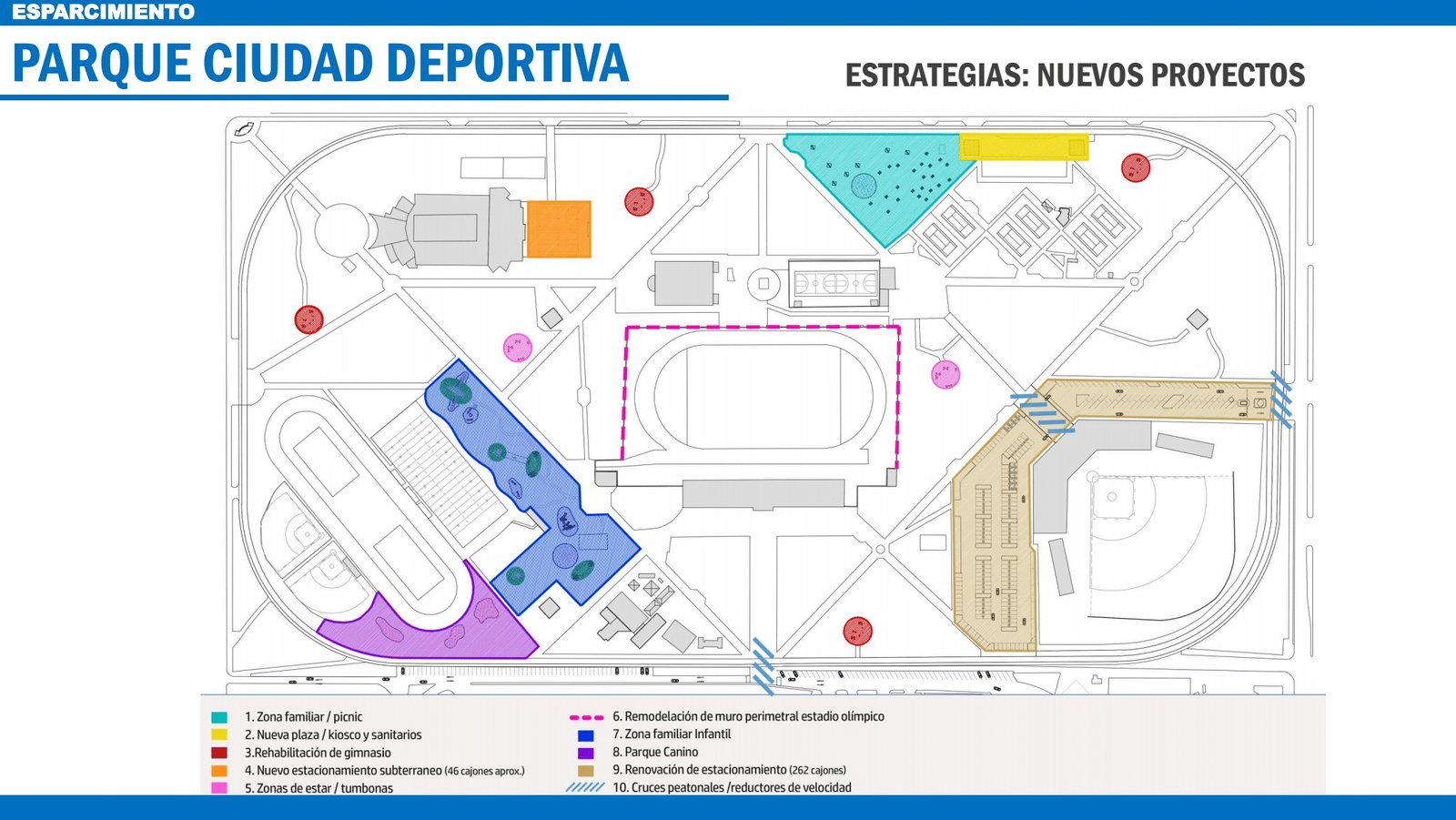 Con relación al proyecto para rehabilitar las deportivas, indicó que las 30 hectáreas que integran el parque de la sección centro-norte han sido el principal pulmón de la ciudad a lo largo de 70 años, y al momento es visitado por 10 mil personas diariamente.