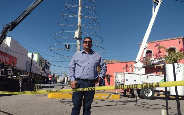 Personal del departamento de Servicios Públicos inició las tareas para la instalación del árbol navideño en la rotonda vehicular que circunda las calles avenida Juárez, Independencia y José Estaban Coronado.