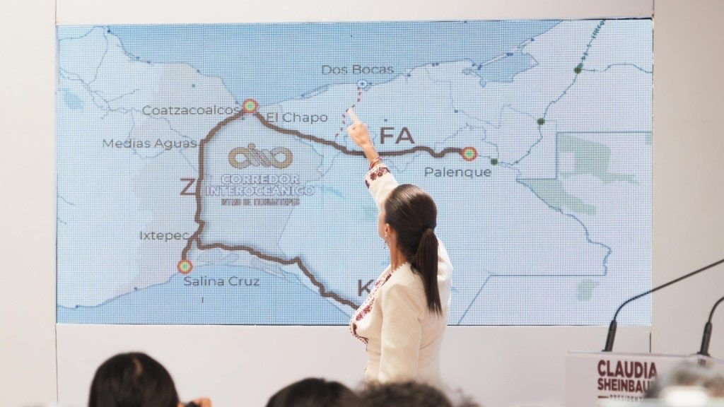 En el sureste es el tren de carga del Tren Maya, y, por otro lado, la conexión a Puerto Progreso; y la conexión a la refinería de Dos Bocas, que es parte fundamental de lo que platicamos en la ocasión que estuvimos analizando el Tren Interoceánico, como dos obras pendientes que nos van a tocar a nosotros”, informó en conferencia de prensa.