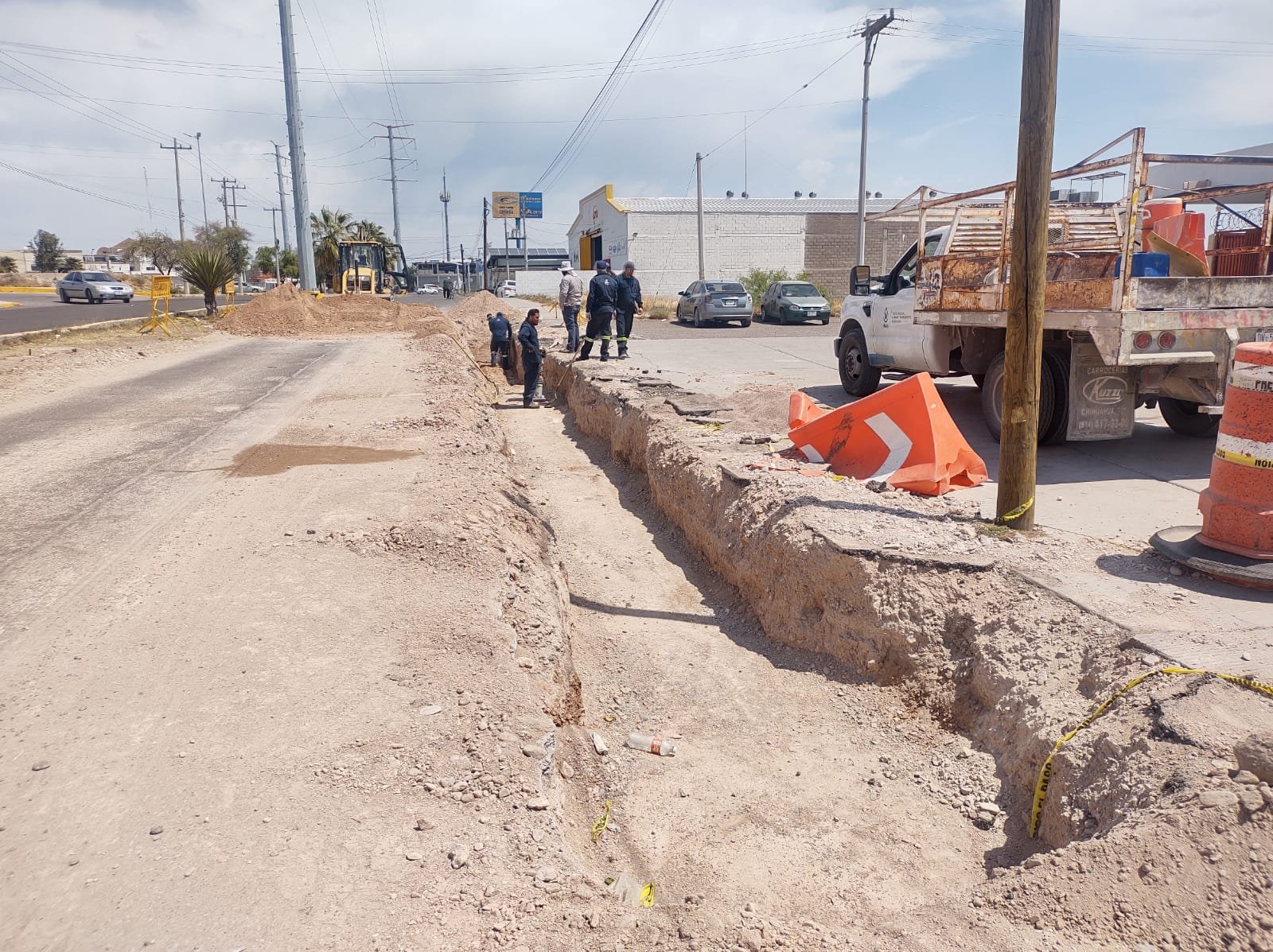 A más de una semana, personal de la Junta Municipal de Agua y Saneamiento (JMAS) de Delicias, continúa con los trabajos de rehabilitación en la avenida Plutarco Elías Calles.