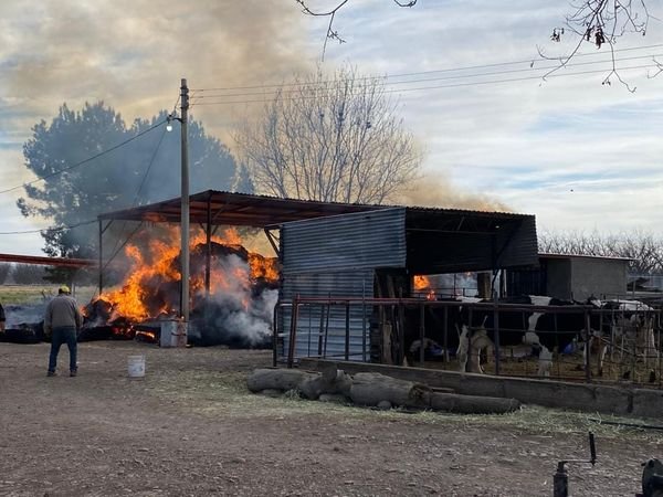 Elementos de bomberos de Rosales acudieron a la localidad de San Valentín esta mañana para sofocar un incendio donde un agricultor y productor lechero resultó con perdidas en 800 pacas chicas de alfalfa y de avena, donde los daños ascienden a los $80.000 mil pesos aproximadamente.