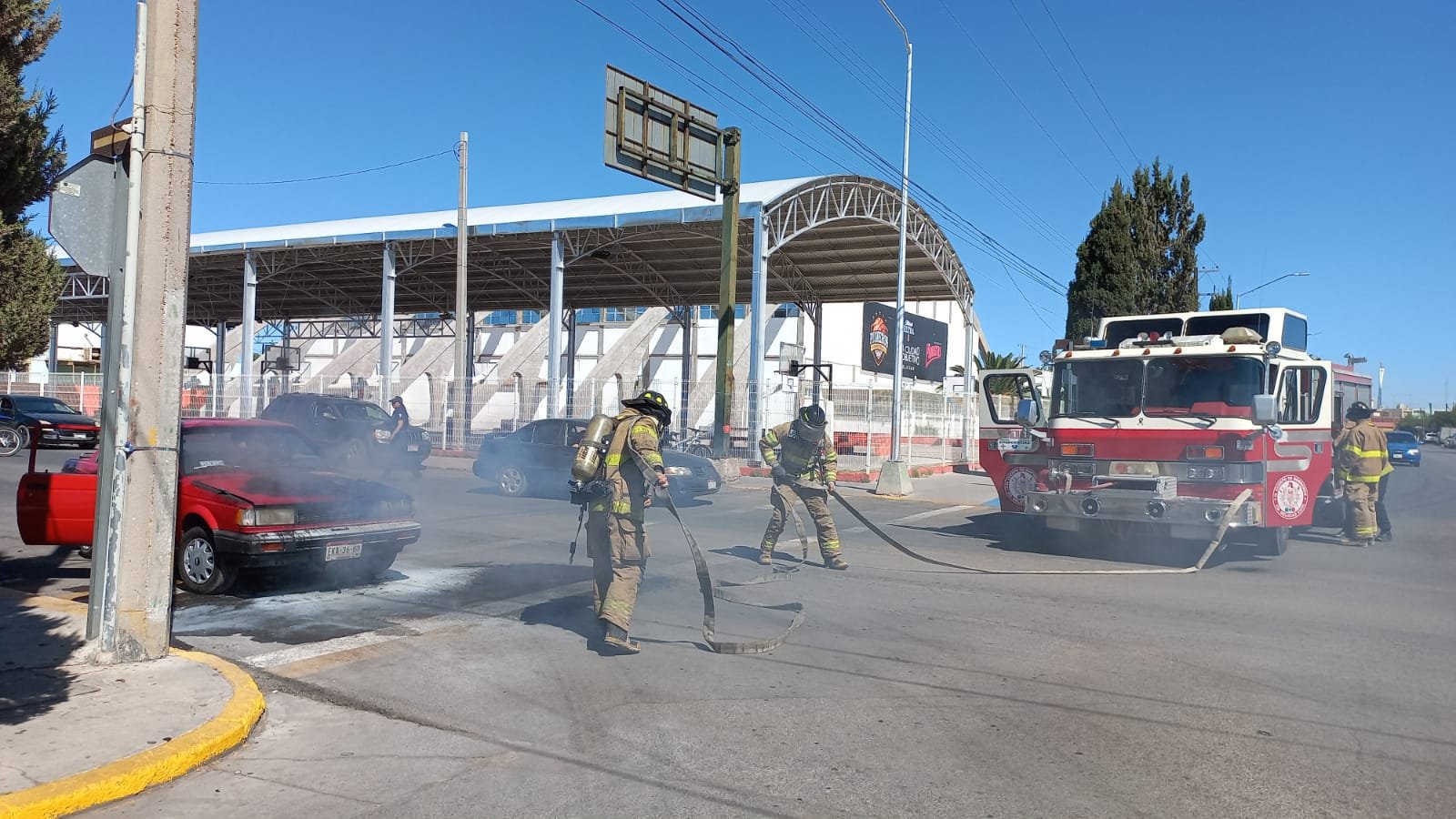 Se registró un incendio en un vehículo en el cruce de la Avenida Del Parque y calle séptima, en el sector poniente de Delicias.
