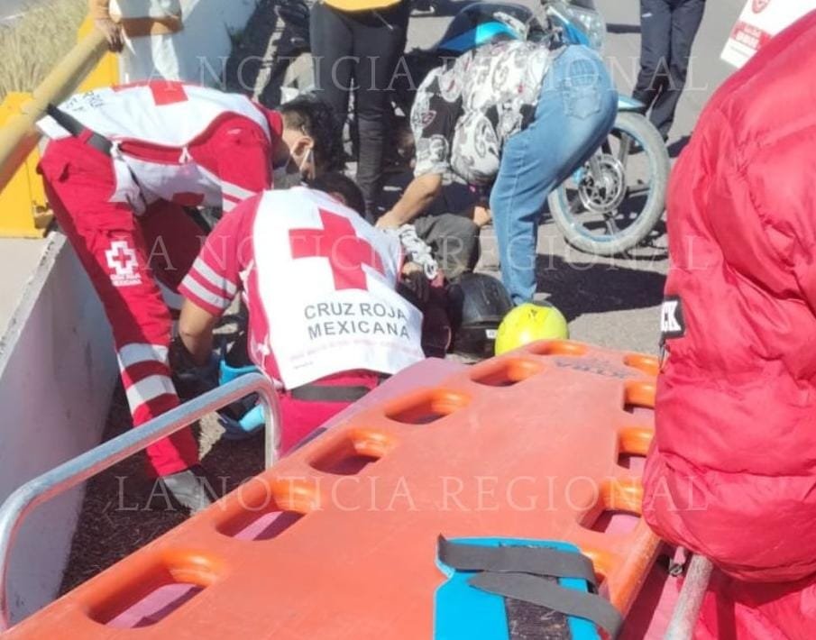 Un adulto a bordo de una motocicleta resultó con fractura expuesta después de accidentarse en el puente de Cielo Vista.