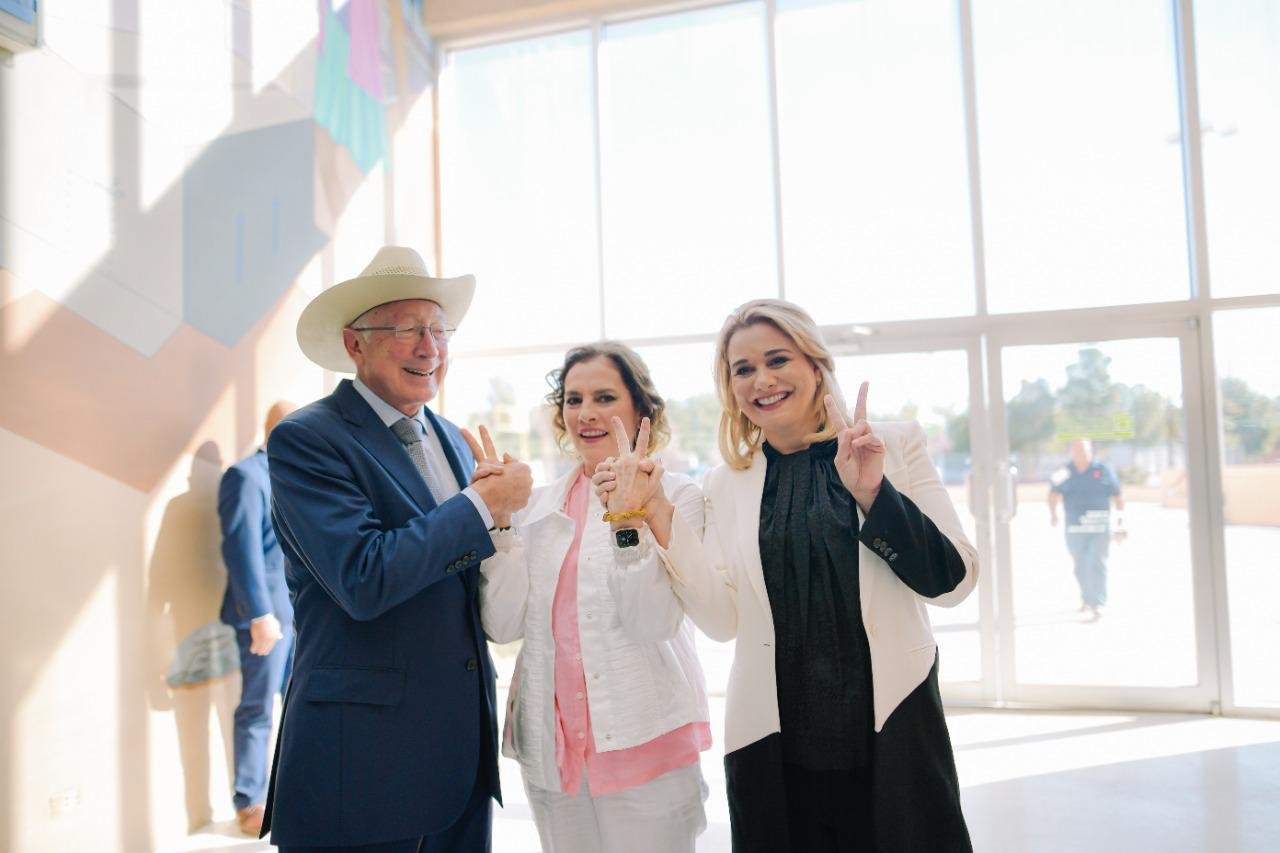 Finalmente, la gobernadora Maru Campos y la presidenta del Consejo Honorario de la Coordinación de Memoria Histórica y Cultural de México, Gutiérrez Müller, estuvieron acompañadas por Cruz Pérez Cuellar, presidente municipal de Ciudad Juárez; Laura Elena Carrillo Cubillas, directora Ejecutiva de AMEXCID, el embajador de Estados Unidos en México, Ken Lee Salazar; la poeta estadounidense Ada Limón; la boxeadora juarense, Diana “La Bonita” Fernández.