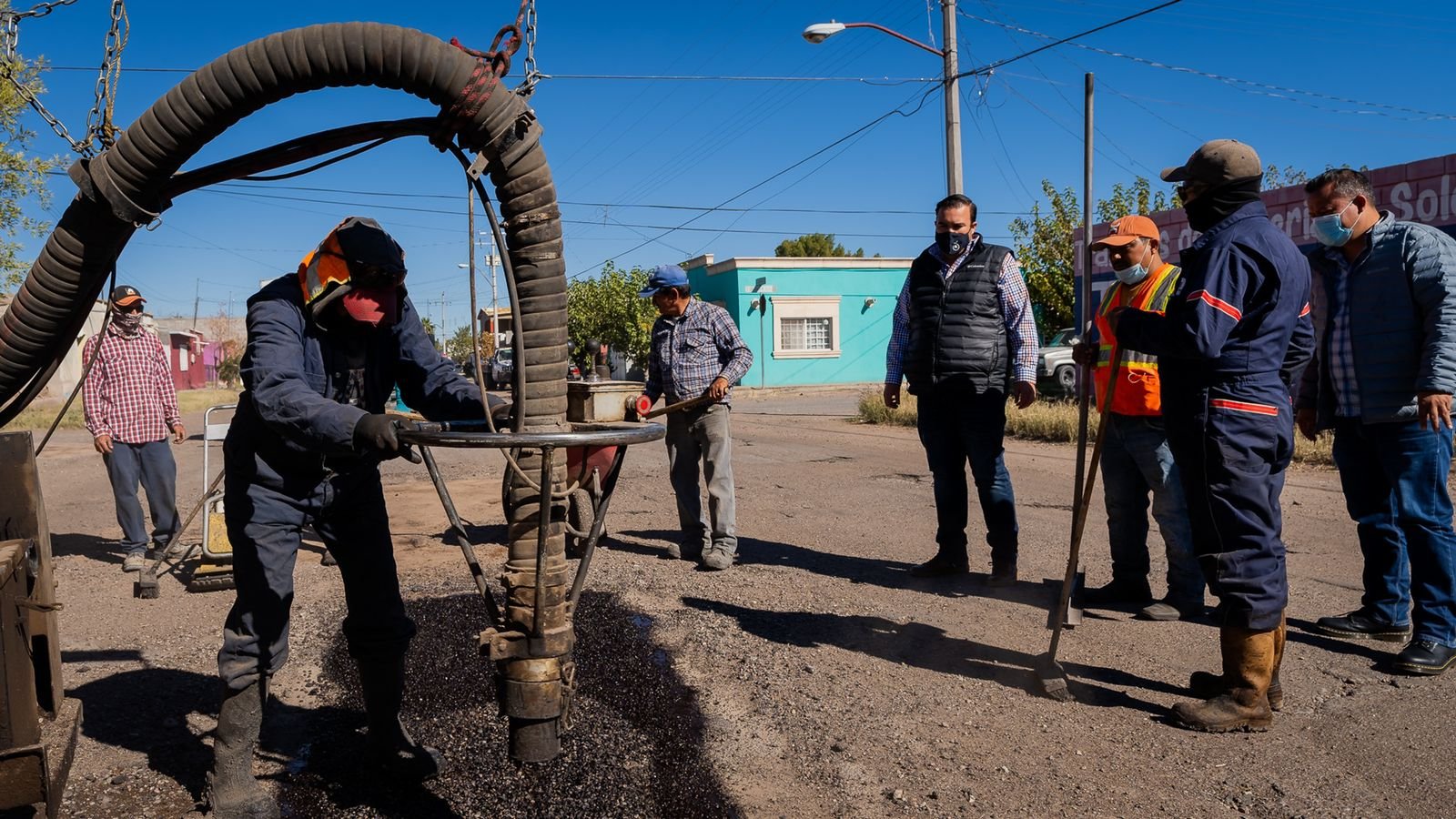 Supervisa Alcalde trabajos de bacheo con máquinas JetPatcher